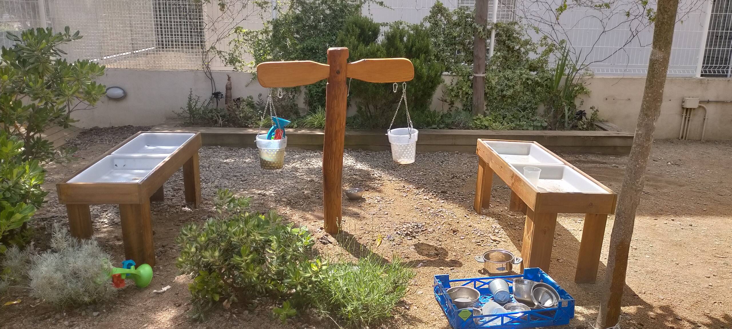 Material: Madera de pino y acacia. Cubos de plástico.