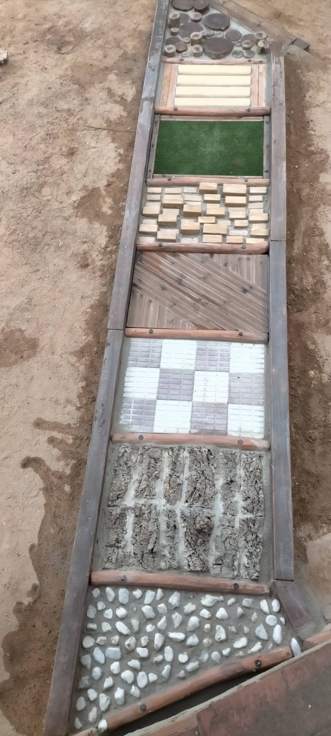 Camino compuesto por los elementos que elijan, instalados de manera que no puedan ser retirados y queden fijos al suelo.