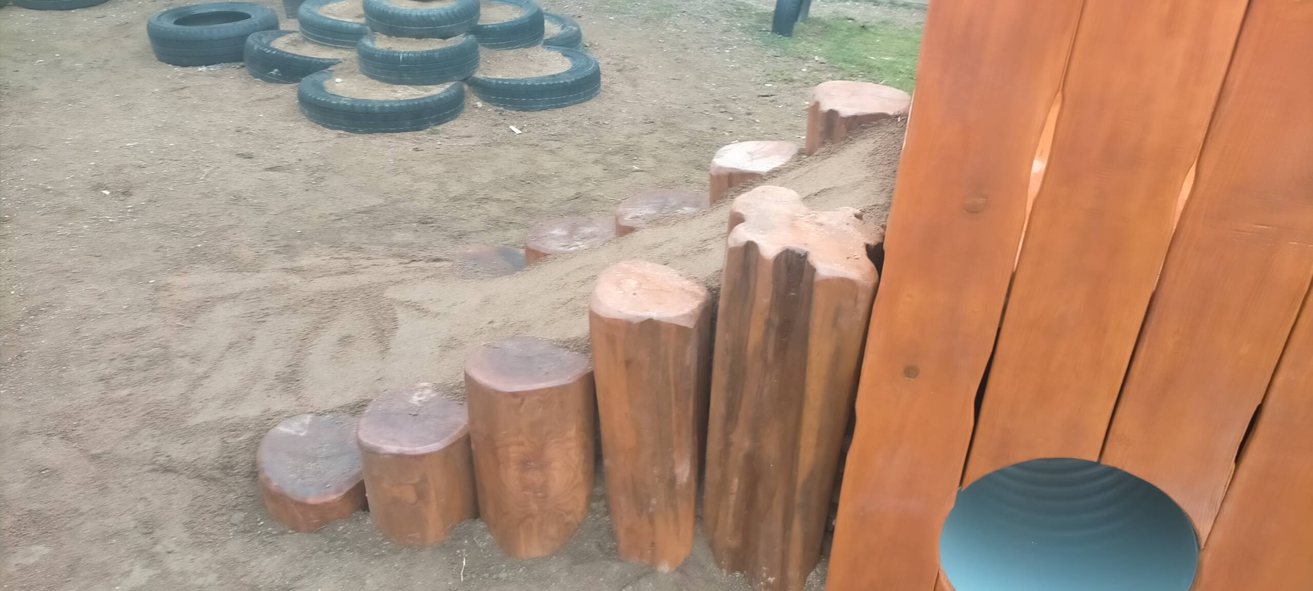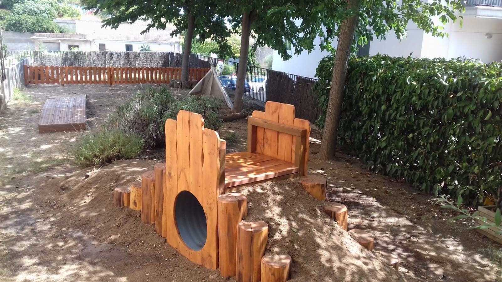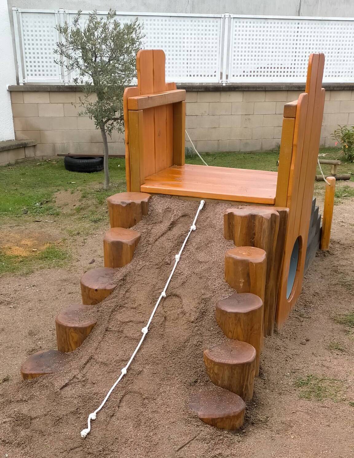 Estructura formada por dos rampas de arena contenidas por troncos de acacia, y con un cuerpo central elevado con tubo.
